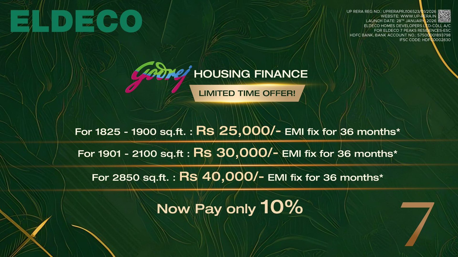 Eldeco 7 Peaks Residences is a rare low-density sanctuary spread across 7.5 acres, where seven iconic towers rise from lush, oxygen-rich green landscapes.