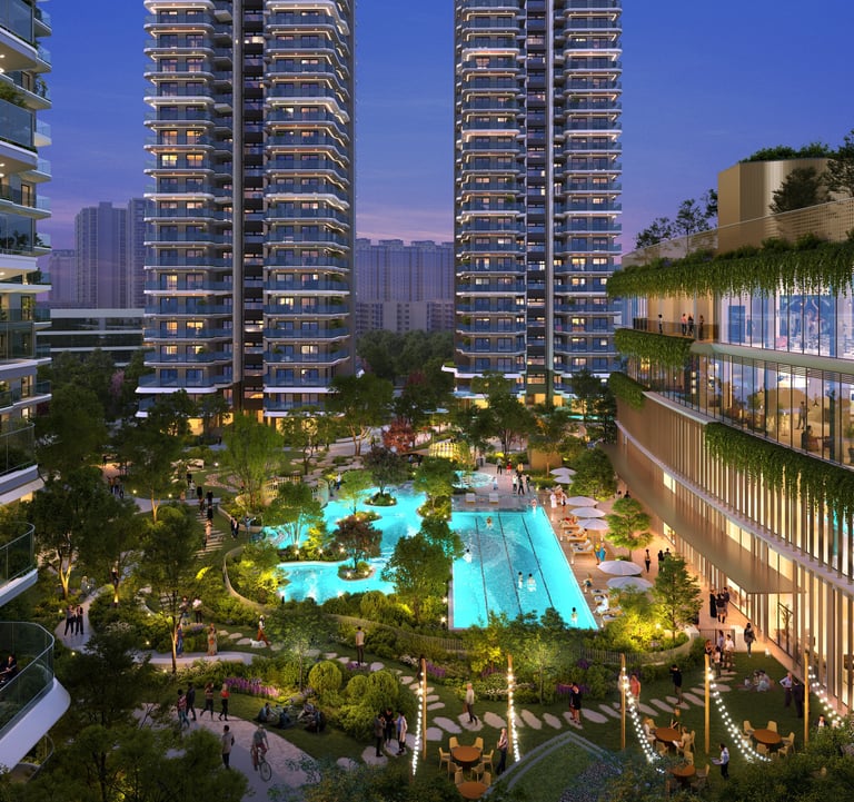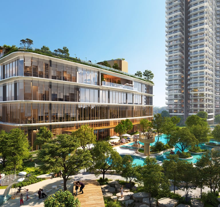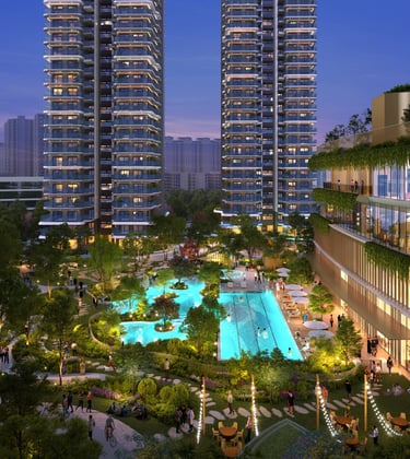 With expansive balconies, serene water features, and resort-style amenities, the project redefines elevated living rooted in calm, space, and natural balance.
